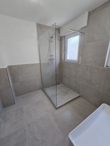 Auf Nachfrage eines Kunden bezüglich der Sanierung seiner Wohnung, haben wir aus einem Grundbaustein etwas Neues geschaffen - In der Küche haben wir einen modernen Look geschaffen: Der Fliesenspiegel wurde komplett erneuert, alle Leitungen wurden auf den neuesten Standard gebracht, und ein neuer, stilvoller Bodenbelag sorgt für ein rundum frisches Erscheinungsbild. Wände und Decken erhielten einen sorgfältigen neuen Anstrich, wodurch der Raum hell, freundlich und einladend wirkt. Auch im Duschraum haben wir alles auf den neuesten Stand gebracht: Tür, Badewanne und Fliesen wurden erneuert, die Heizung wurde optimal angepasst, und Wände sowie Decken erhielten einen frischen Anstrich. Das Ergebnis ist ein sauber gestalteter, moderner Duschbereich, der sowohl funktional als auch optisch überzeugt.